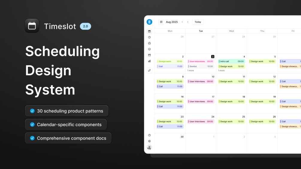 Build your next scheduling product with a design system focused on calendar views and systematic component architecture.